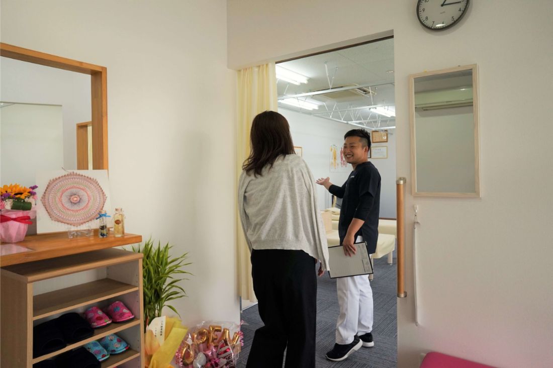 当院に長く通ってくださるほとんどの患者様が、高い治療技術に加えアットホームな雰囲気を非常に気に入ってくださっています。当院は施術を担当する技術者と受付業務を行うスタッフの全員がコミュニケーションを大切にしています。繰り返し申し上げますが、「心と体は繋がっている」「ストレスや不安を抱えている状態ではお身体の不調はなかなか治らない」ということをスタッフ全員が熟知しているからこそ、何気ないコミュニケーションも治療の一部と考える風土が当院には根付いています。またスタッフは皆、子供が大好きな者が集まっています。子供を連れて行けないから治療が受けられないという心配は、当院では必要ありません。キッズスペース、ベビーベッド、クーハンといった設備も整っております。ベビーカーをベッドの横に付けて施術を行うこともできますので、ご遠慮なくお子様と一緒にご来院ください。